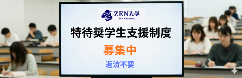 ZEN大学>特待奨学生支援制度 ZEN大学公式ウェブサイト 応募期間 2025年10月1日~2026年4月15日 対象者 募集人数 奨学金の内容 👉返済不要の給付型奨学金 👉他の奨学金との…